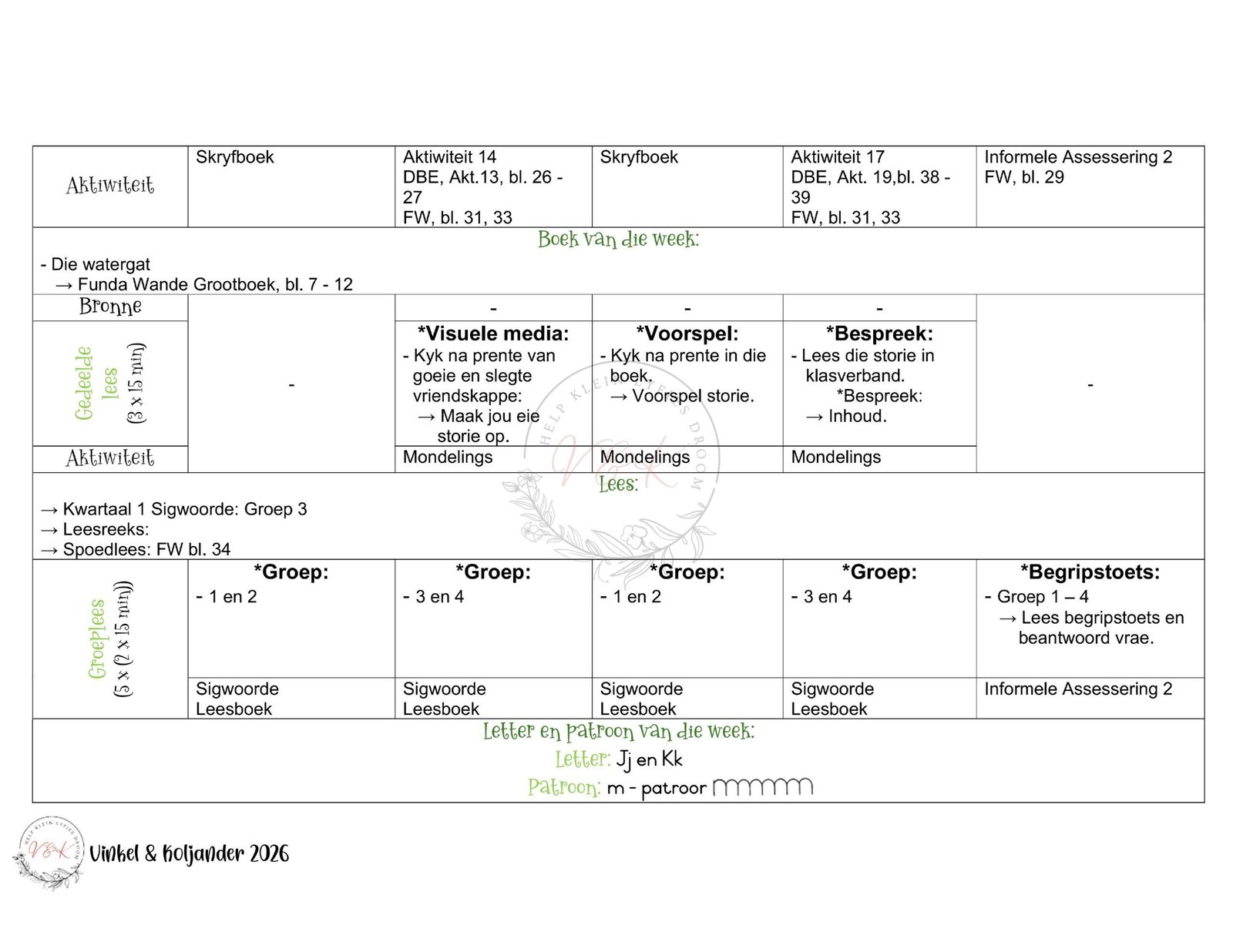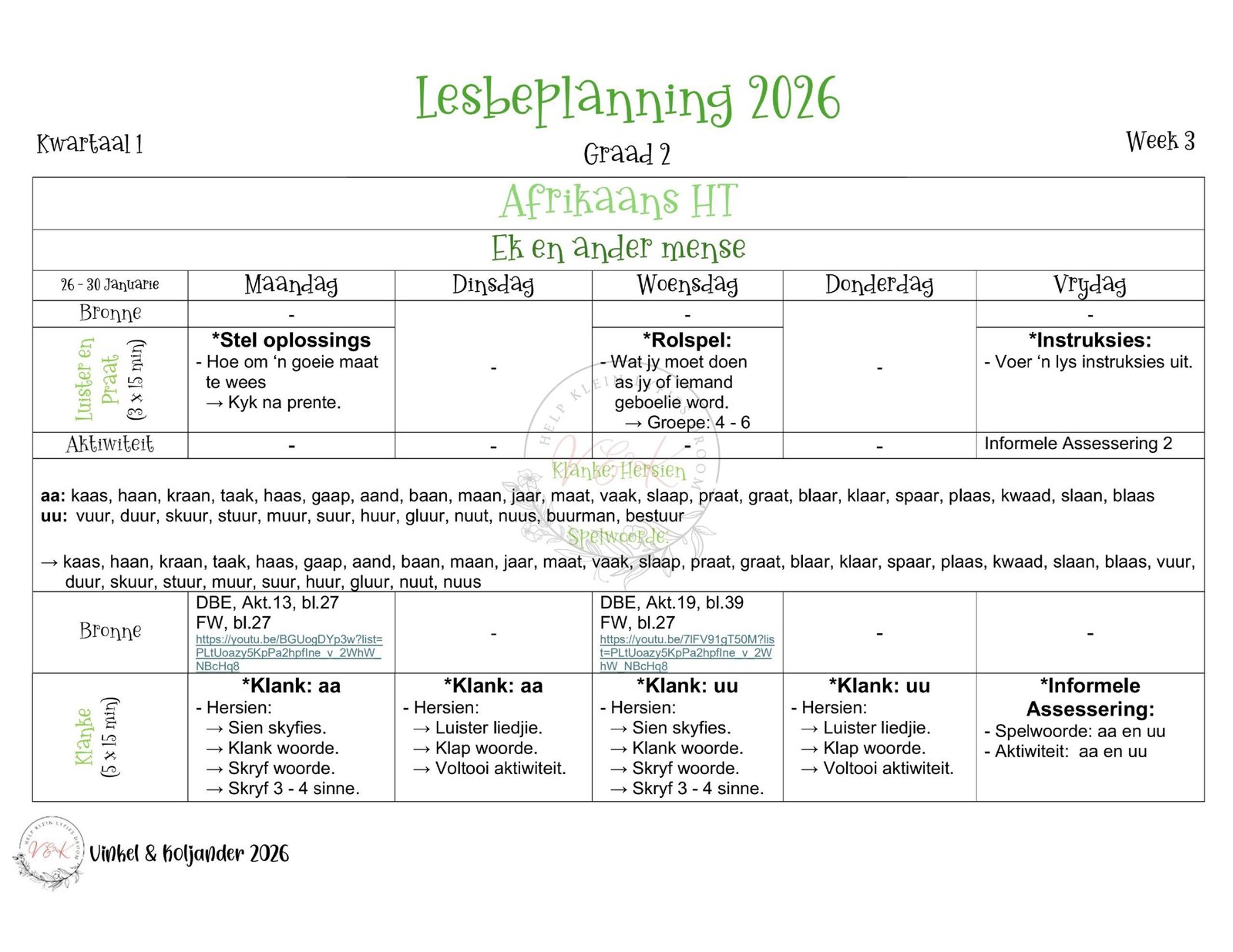 - Die aktiwiteite is inlyn met die uitkonste van die ATP en Vinkel en Koljander se lesbeplanning.