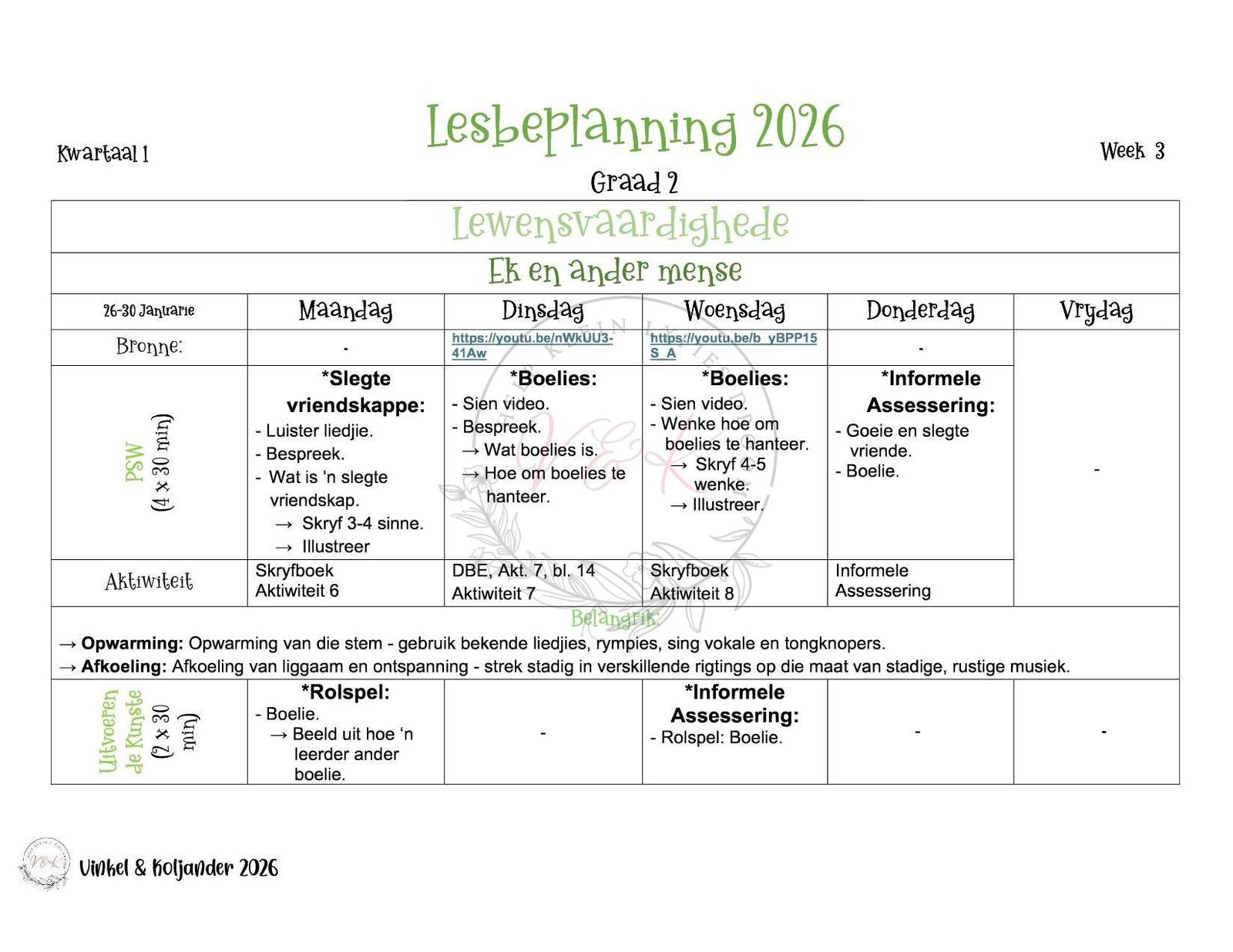 Graad 2 Lewensvaardigheid Lesbeplannings Pakket – Kwartaal 1 2026