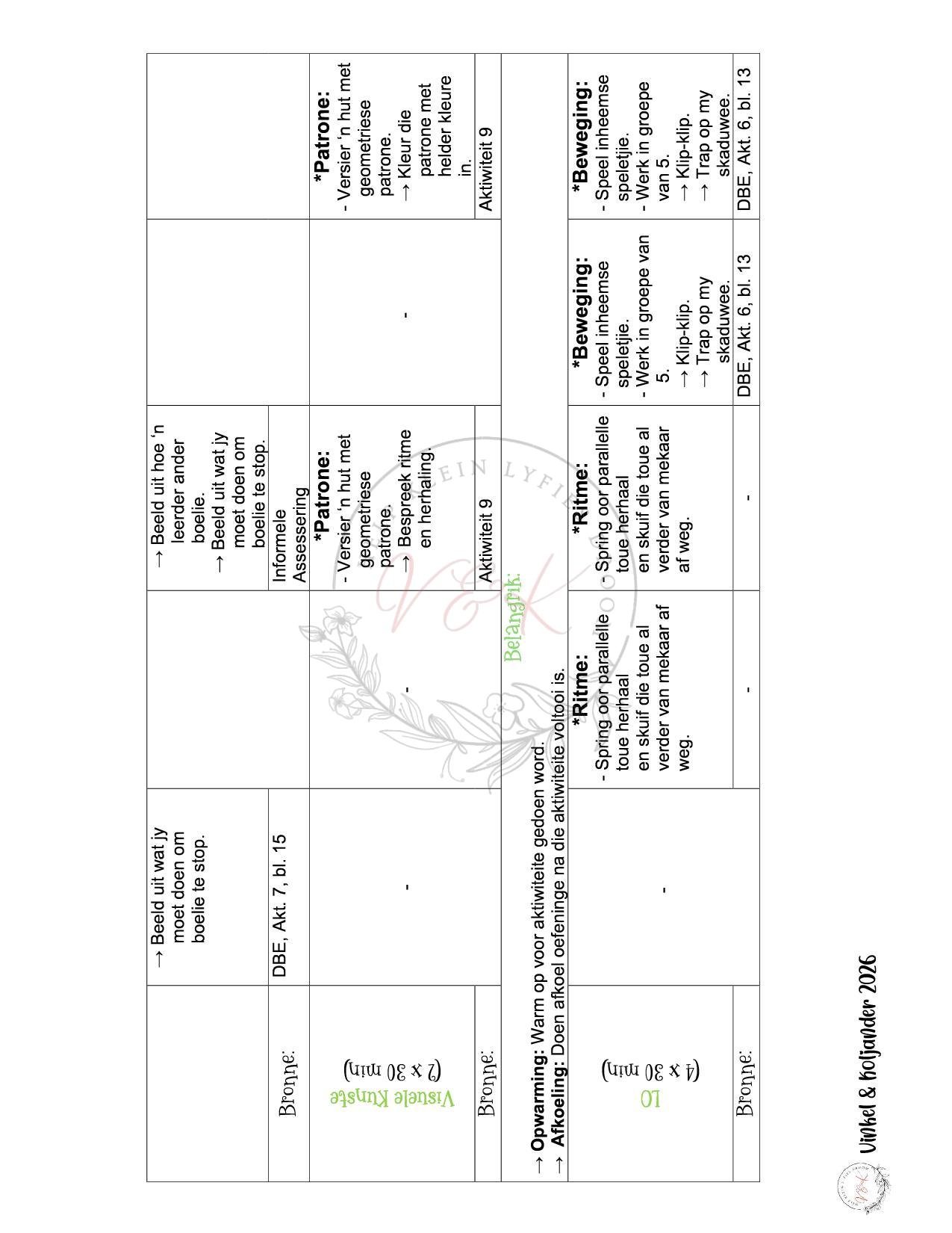 • Daaglikse lesbeplanning wat oor 10 weke strek.