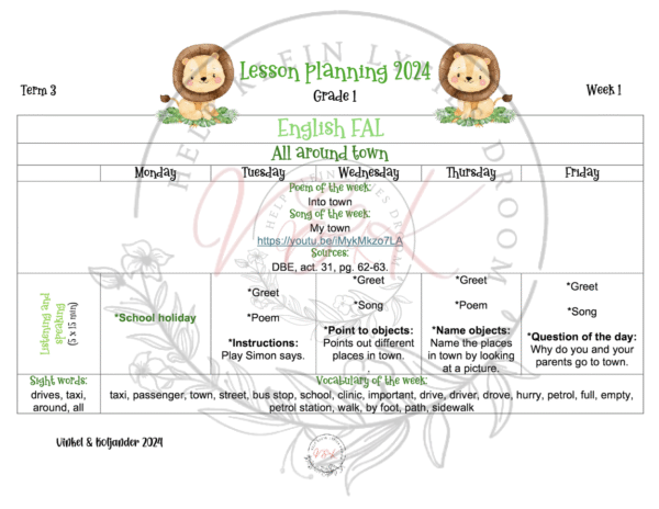 Grade 1 English FAL Lesson Planning and Activities Term 3 2024