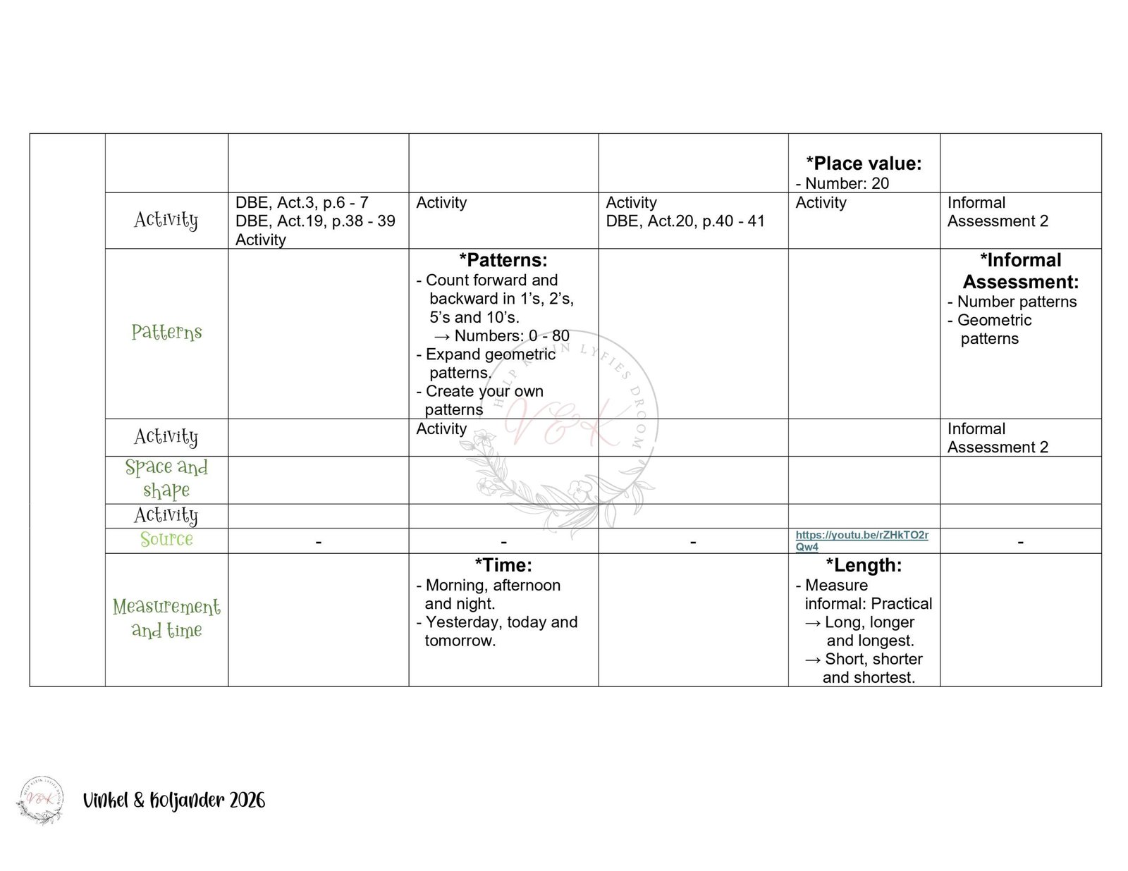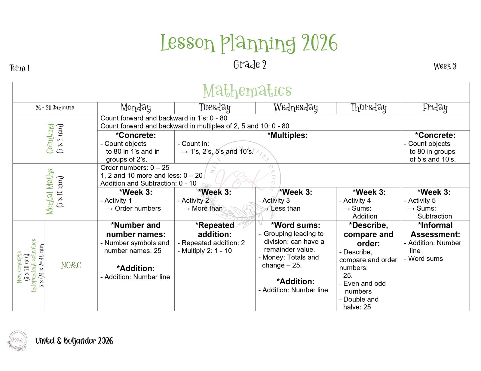 Grade 2 Mathematics Lesson Planning – Term 1 2026